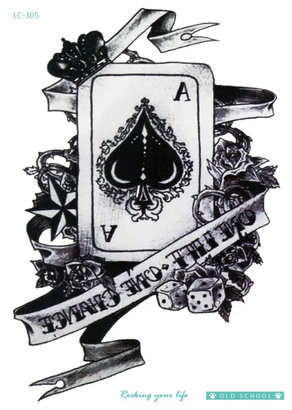 Rocooart Lc305 Vintage Poker Fake Tattoo Taty Black White Flowers